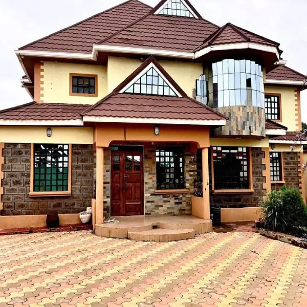 Elegant 5-bedroom mansion for sale in Junction Kimbo, Kiambu County, on a 40×60 plot, offering top-tier security and modern amenities.